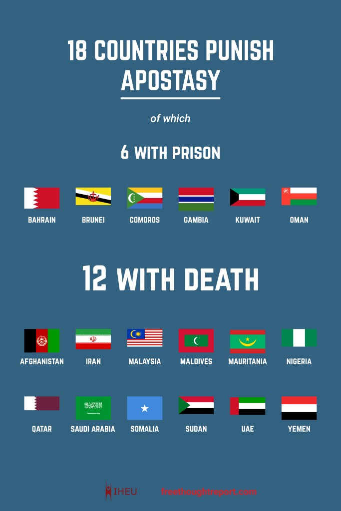 Il perché è risaputo: come messo in mostra dal Rapporto sulla Libertà di Pensiero di Humanists International, in almeno 18 paesi al mondo l’apostasia – ovvero l’atto di abbandonare una religione – è reato.